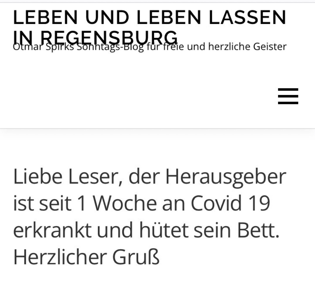 Regensburgs Oberschwurbel-Anwalt und -Blogger Otmar Spirk ist nach eigener Aussage an Corona erkrankt und nach 12 Tagen verstorben